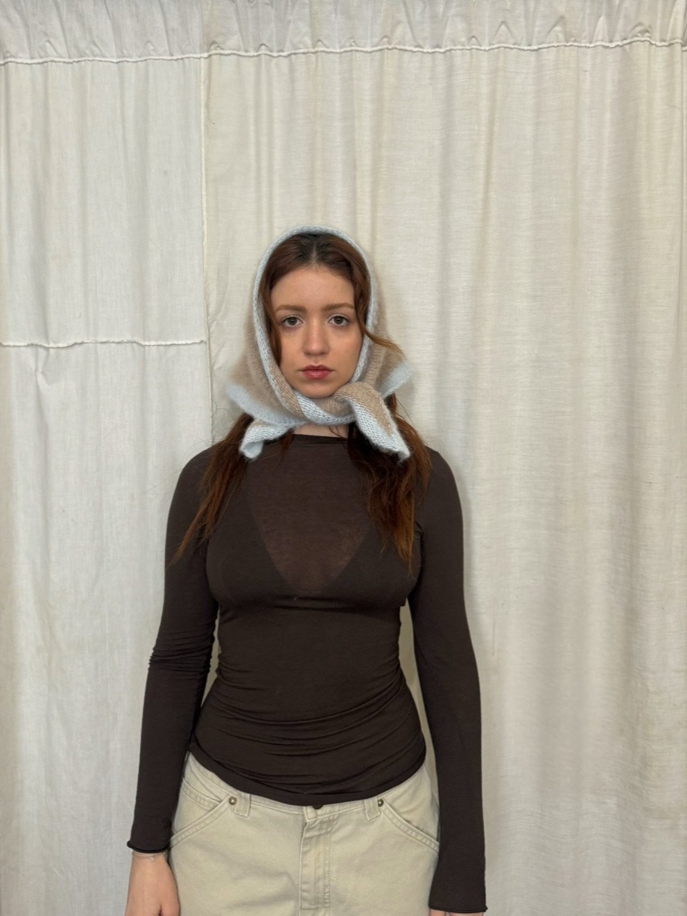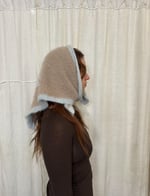 the first of the glow scarf series so she’s super special . ethereal brushed wool & mohair blend with hand-stitched pattern . lightweight but warm, with a soft fuzzy halo